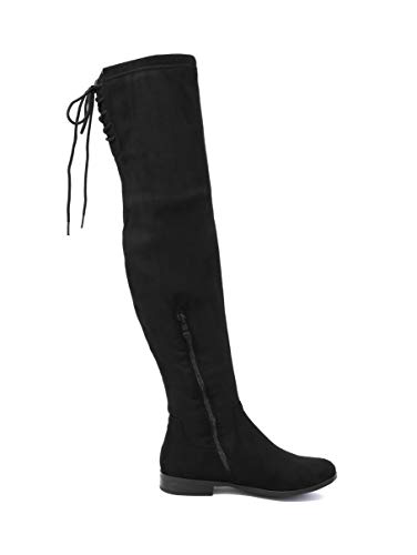 Allegra K Botas Rodilla Alta Tacón Grueso Cremallera Lateral Punta Redonda para Mujeres Negro 36 EU