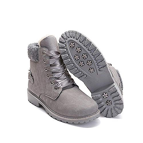 Botas Nieve Mujer Otoño Invierno Calentar Piel Forro Botines Retro Snow Boots Cordones Zapatillas Planas Gris 40