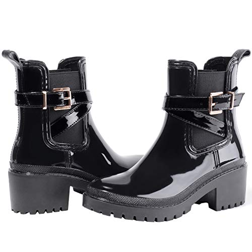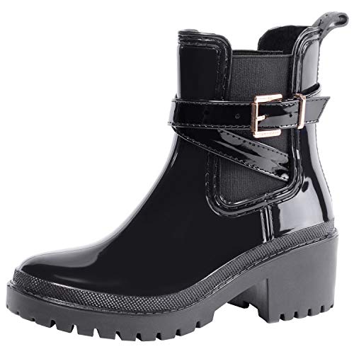 Splugen Botas de Agua Mujer Botas de Lluvia Goma Impermeables Chelsea (Negro, 39)