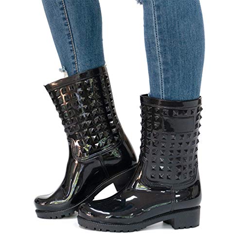 - GOMA NATURAL: Las botas de lluvia de pantorrilla anchas Wellington Rain Boots están hechas de un material de goma de alta calidad para que sean cómodas y más duraderas.