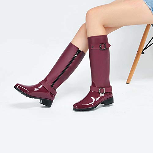 Botas de Agua Mujer Lluvia Altas Impermeable Forradas Invierno Niña Goma Wellington Boots(Rojo,talla37)