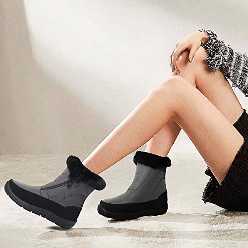 Camfosy Botas de Nieve para Mujer, Zapatos de Invierno Botas de Lluvia de Piel Botas Impermeables Furty Rising Hot para Caminar Senderismo