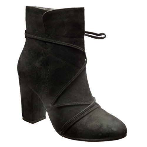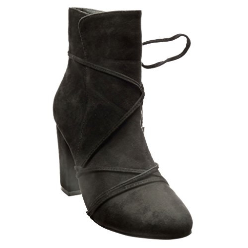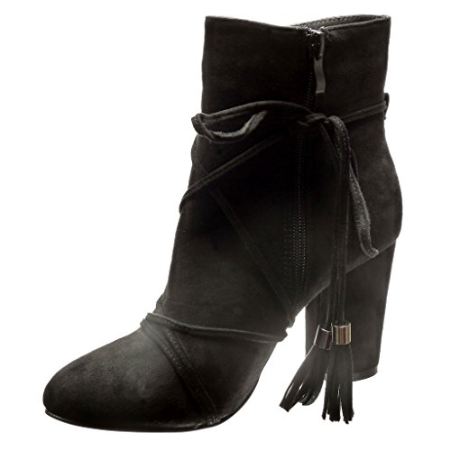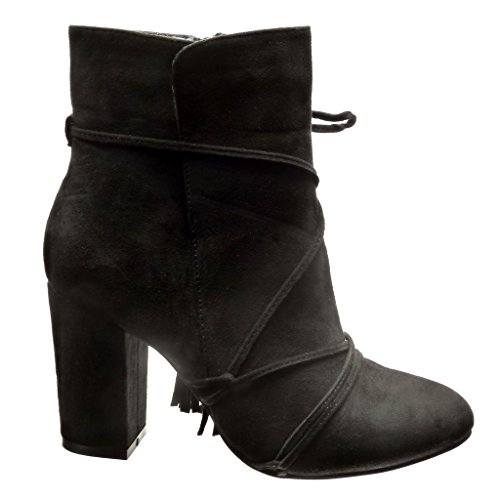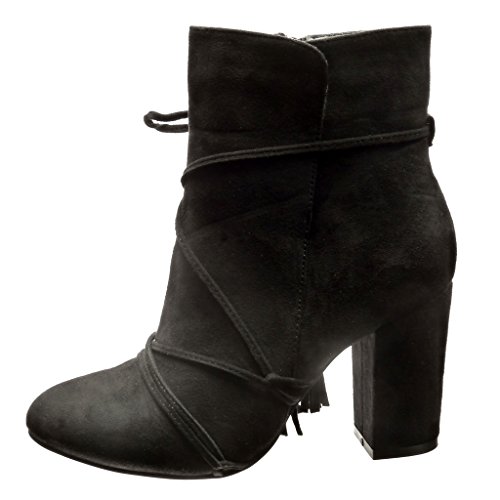 Angkorly - Zapatillas Moda Botines Altas Mujer Multi-Correa Pompom Fleco Tacón Ancho Alto 9 CM CM - Negro LL669 T 40