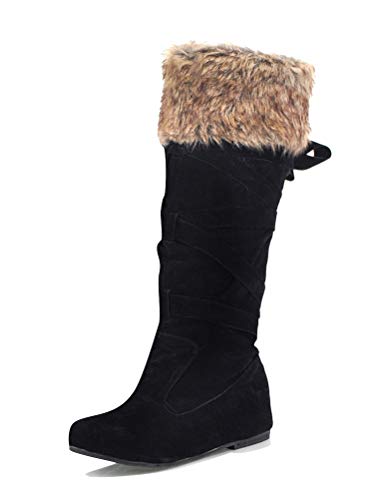 Minetom Mujer Botas Largas De Gamuza Casual Tacón Grueso Planas Zapatos Otoño Invierno Retro Botas Altas Calentar Felpa Negro 37 EU