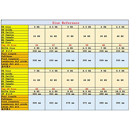 - Este tamaño de los zapatos es de tamaño asiático. Por favor, consulte nuestra tabla de tallas o descripción antes de ordenar. Si tiene alguna pregunta, por favor infórmenos libremente.