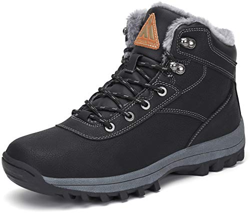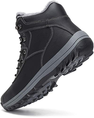 - gracosy Hombre Botas de Nieve Invierno Trekking Zapatos 2020 Calientes Sneakers Antideslizante Botines Al Aire Libre Senderismo Cordones Negro,Talla pequeña