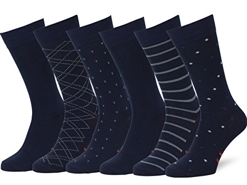 Easton Marlowe 6 PR Calcetines Sutilmente Estampados Hombre - 6pk #4-5, Azul - 43-46 talla de calzado UE