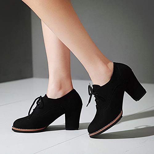Luckycat Zapatos de tacón Ancho Altas Vestir Noche Chic para Mujer Otoño Calzado de Cuña Dama Sólido Negras Moda Calzado de Trabajo Fiesta Zapatos con Punta Boda Tallas Grandes