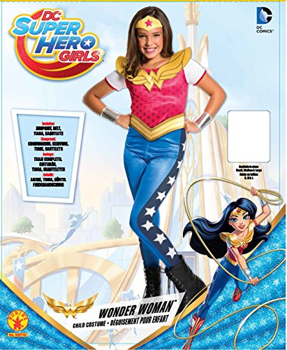 Rubies Disfraz oficial de mujer maravilla de 132 cm, disfraz para niƱos de 5 a 7 aƱos, tamaƱo mediano