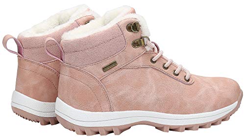Mishansha Hombre Mujer Botas de Nieve Invierno Botines Senderismo Impermeables Deporte Trekking Zapatos Fur Forro Aire Libre Boots,Rosa 40 EU