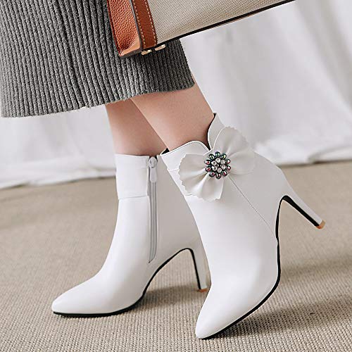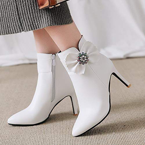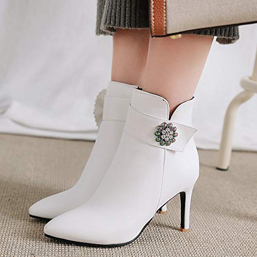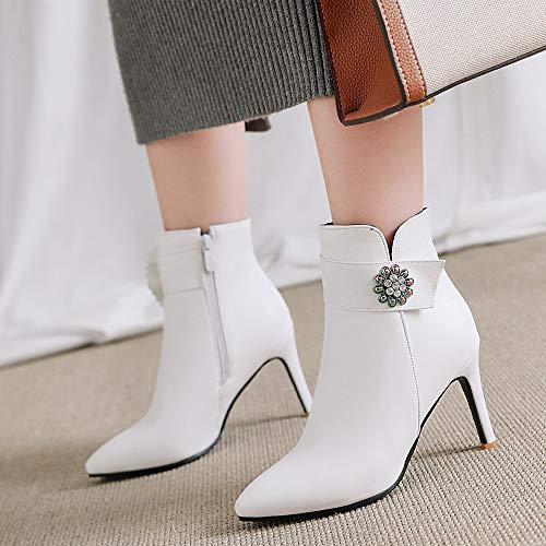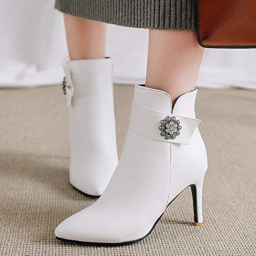Mediffen Mujer Tacón De Aguja Puntiagudo Elegante Botines Blanco-HM Talla 47 Asiática