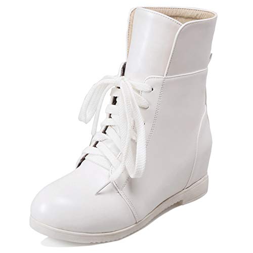 Mediffen Mujer Tacón De Cuña Casual Cordones Otoño Invierno Ankle Botines Cuña Interior Warm Punta Redonda Botas De Estilo Motero Blanco-HM Talla 36 EU