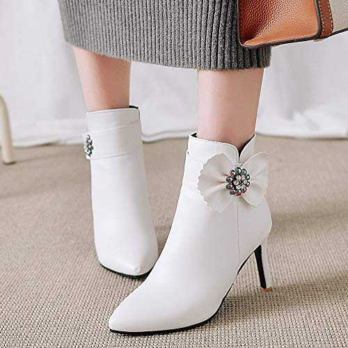 Mediffen Mujer Puntiagudo Tacón De Aguja Elegante Botines Blanco-HM Talla 38 Asiática
