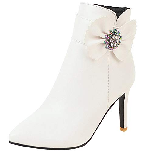 SUCREVEN Tacón Alto Boda Boots Clásica Lazos Botines Mujer Moda Strass Vestido Boots Blanco-Hm Talla 31 EU