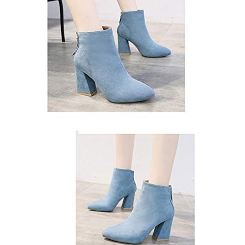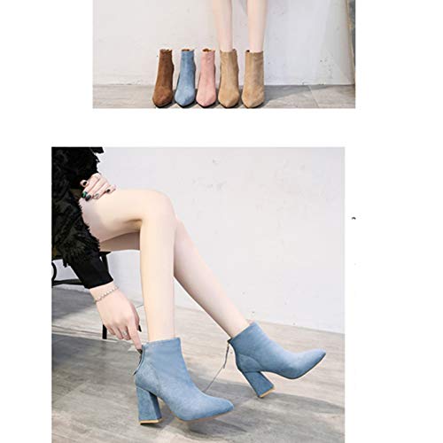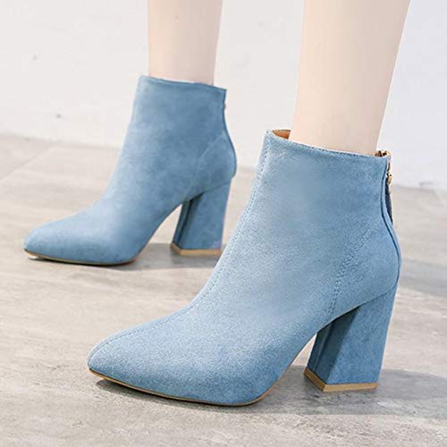 Botines de Mujer de Gamuza de Cuero con Punta Puntiaguda Estilo Simple Botines Chelsea de tacón de Bloque con Cremallera Otoño Invierno Botas Formales concisas