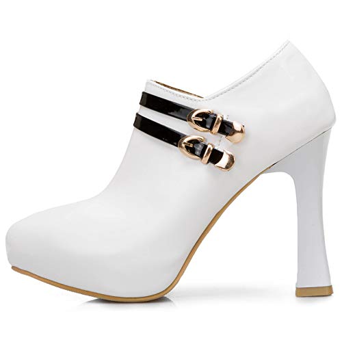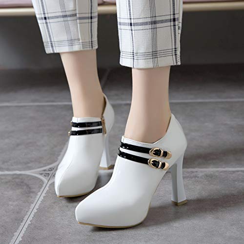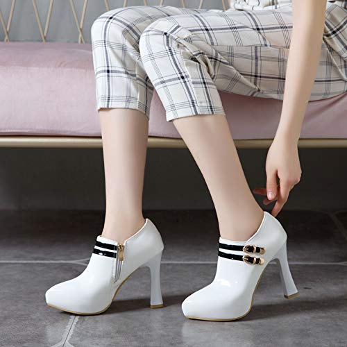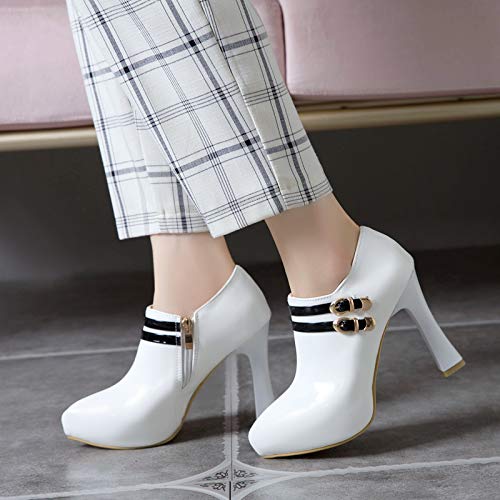 Garggi Mujer Puntiagudo Noche Tacón Alto Botines Cremallera Elegante Fiesta Bride Tacón Ancho Boda Charol Boots Hebilla Blanco Talla 45 EU/47Asiática