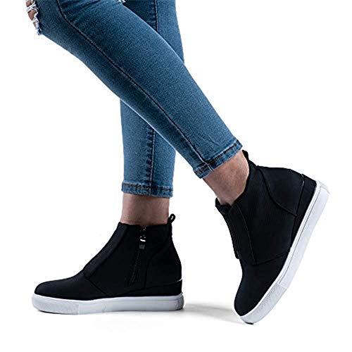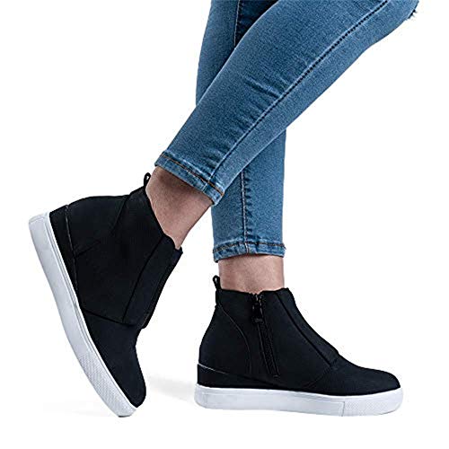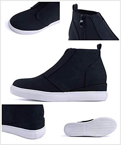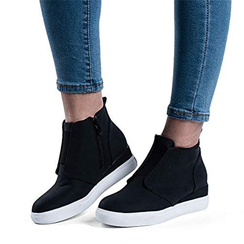 Mujer Zapatillas de Deporte de Cuña Botines de Plataforma Zapatos de Tacón Alto Zapatillas Planas con Cremallera Aumentar Dentro Sneakers Cómodos al Aire Libre Casuales