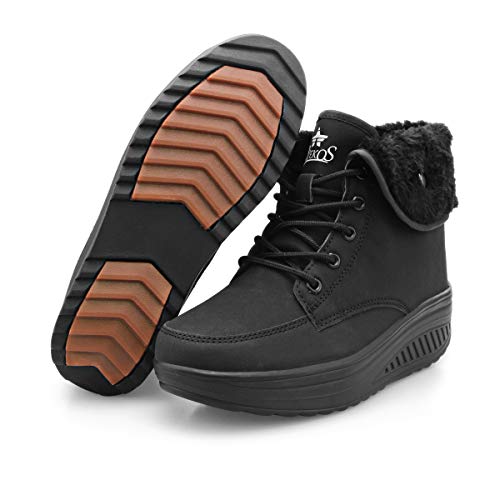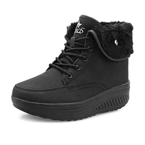 Botas De Nieve De Invierno Mujer Calientes Fur Botines Sneakers Zapatos de Plataforma de Cuña de Fitness Zapatos de Andar Impermeable Anti Deslizante Zapatos Negro-Top (Piel Forrada) 41 EU