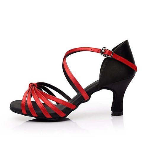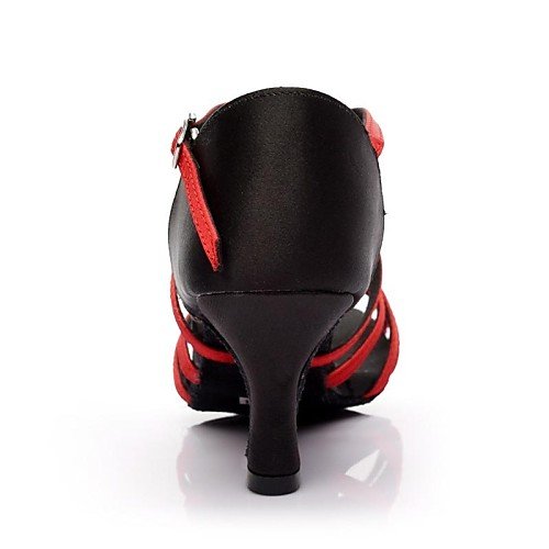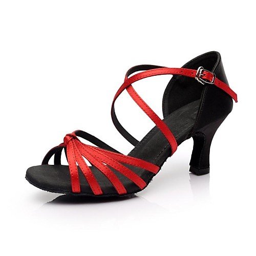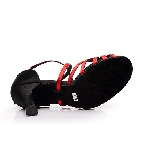 T.T-Q Zapatillas de Baile para Mujer Satén Personalizado Tacón Rojo Sandalias Latinas Salsa Jazz Tango Swing Practice Indoor Performance