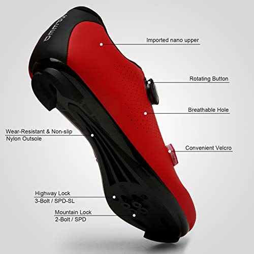 - 【COMPATIBILIDAD】 Los zapatos de ciclismo son unisex y compatibles con sistemas de pedal / cala de 2 o 3 tornillos, incluidos Look Delta, SPD, SPD-R y SPD-SL y bicicleta estática.