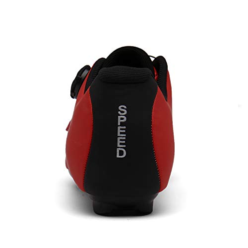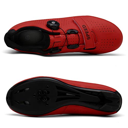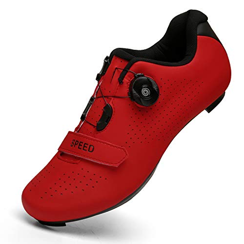 Calzado de Ciclismo para Hombre, Mujer, Ciclismo de Carretera, Calzado para Montar, Hebilla giratoria, Taco Transpirable Red46