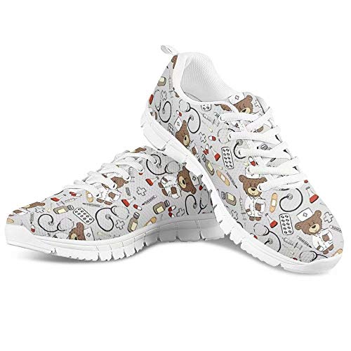 POLERO Zapatos Deportivos para Mujer, Zapatillas Planas con diseño de Osos, Zapatillas de Tenis con Cordones de Malla, Zapatos para Correr Ligeros y Casuales, EU 37,Gris Claro