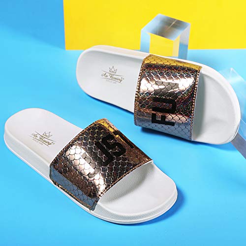 AXBOXING Chanclas Mujer Deslumbrantes/Leopardo/Dorado Sandalias Verano Piscina Playa Interior Al Aire Libre Tamaño 36-41 (Blanca, Numeric_41)