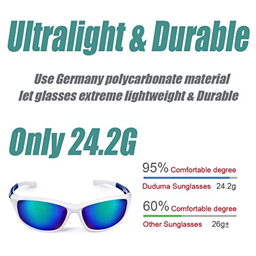 Duduma Gafas de Sol Deportivas Polarizadas Para Hombre Perfectas Para Esquiar Golf Correr Ciclismo TR90 Súper Liviana Para Hombre y Para Mujer (marco blanco con lente azul)