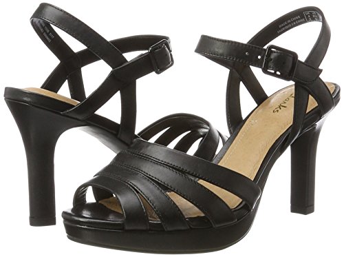 Clarks Mayra Poppy, Sandalias de Tacón para Mujer, Negro (Black Leather), 39.5 EU