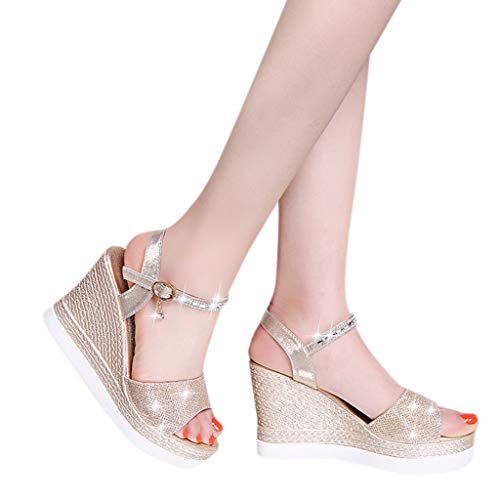 Sandalias Mujer Verano 2019 riou Bohemia Cinturón de Diamantes de imitación con cuña y Zapatillas Abiertas de Playa Zapatillas y Chanclas para Mujeres Zapatos Vestir de Fiesta riou