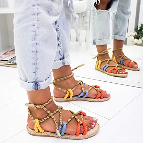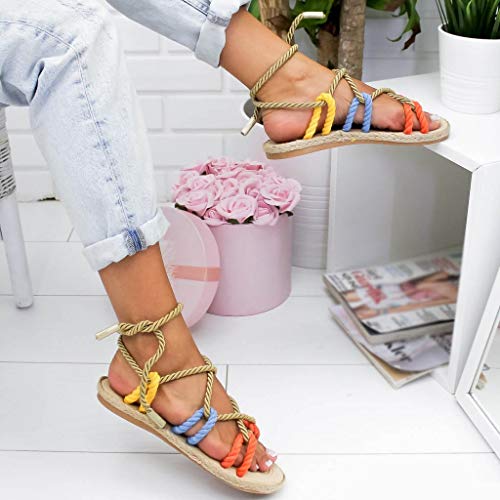 YWLINK Zapatillas De Verano para Mujer Roma Zapatillas De Playa De Encaje Plano De CáñAmo Cuerda Abierta Sandalias De Dedo del Pie Antideslizante CóModo Moda TamañO Grande Zapatos(Multicolor,39EU)
