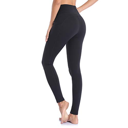 Gimdumasa Pantalón Deportivo de Mujer Cintura Alta Leggings Mallas para Running Training Fitness Estiramiento Yoga y Pilates GI188 (Negro, L)