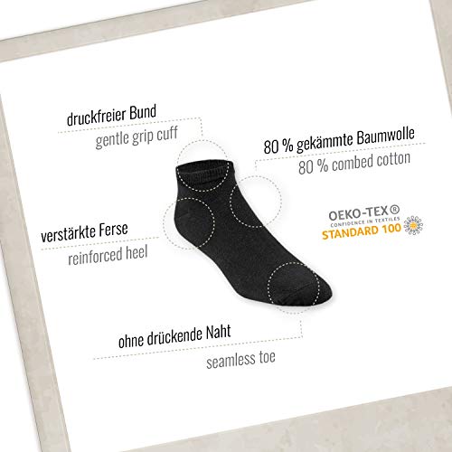 Rob & Dave's Calcetines de deporte corte bajo - 5 pares - Material certificado no tóxico - Negro blanco - Calcetines hombres y calcetines mujer - Calcetines deporte sin costuras incomodas ni opresión