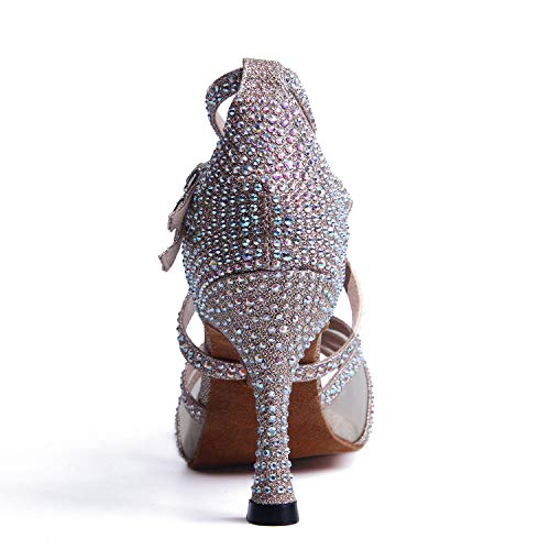 Syrads Zapatos de Baile Latino con pedrería para Mujer Salsa Tango Moderna Bachata Zapatos de Baile de Salón Suela Blanda 1057-01