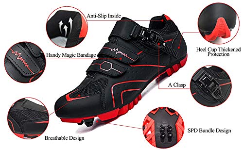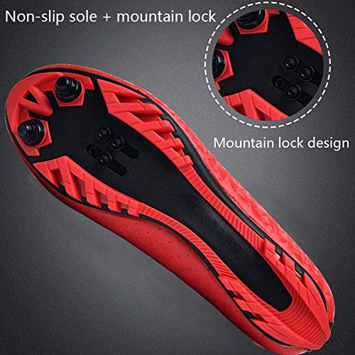 - ? [Diseño antideslizante] Las suelas de las zapatillas de ciclismo están diseñadas con superficies irregulares, cerraduras antideslizantes y cerraduras de montaña, que pueden mejorar la mejor tracción del canal de conducción y la seguridad al pisar.