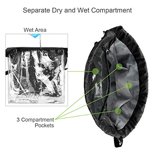 - 【SE SEPARACIÓN LIMPIA Y SUCIA】: La bolsa con cordón de Ryaco es una bolsa maravillosa que cuenta con un compartimiento de plástico transparente en el compartimiento principal, que le permite llevar sus artículos limpios y sucios (secos y húmedos) en una misma bolsa pero con un compartimento diferente, ideal para trajes de baño, cambio de ropa u otros Artículos húmedos que no goteen agua.