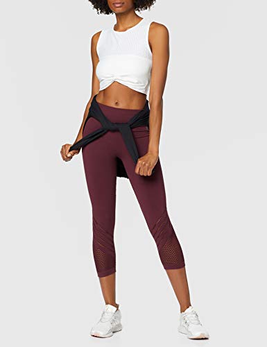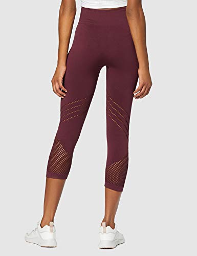 Marca Amazon - AURIQUE Mallas de Deporte Cortas sin Costuras Mujer, Rojo (Port), 42, Label:L