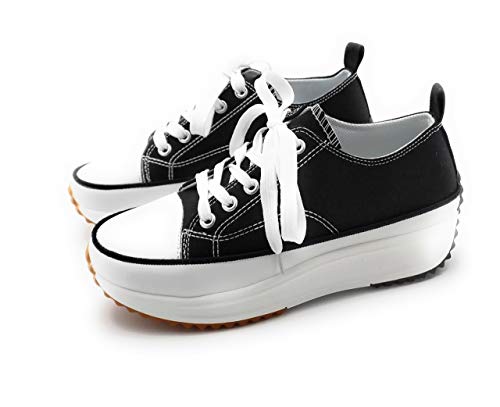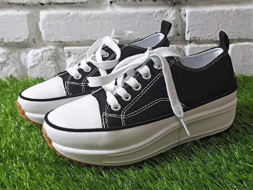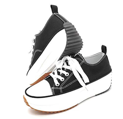 Zapatillas con Plataforma, Zapatillas de Lona Mujer, Zapatillas de Moda (Negro, 37 EU, 37)