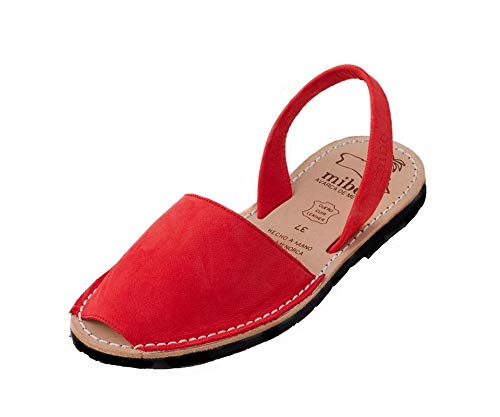 Auténticas Avarcas Menorquinas Basic Nobuck Rojo - Talla 39 EU