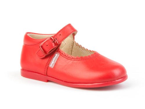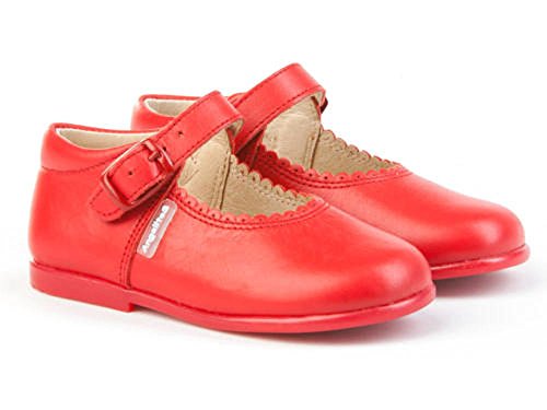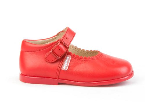 Merceditas de Cuero Color Rojo para Niña. Marca AngelitoS. Modelo 500. Todo Piel. Calzado Infantil Hecho en España. Número 20