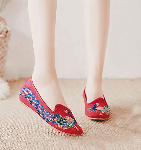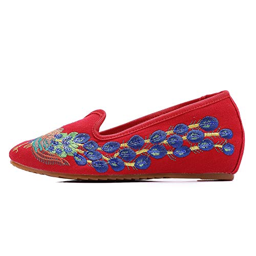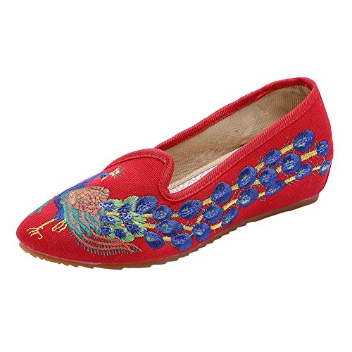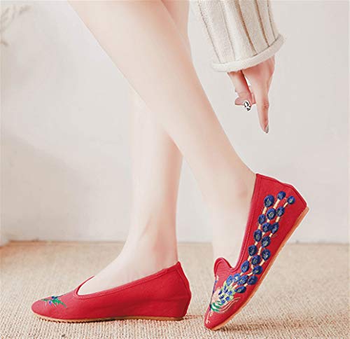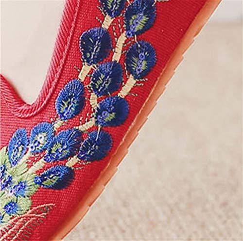 Liveinu Zapatos de Mujer Mary Jane Qipao Manoletinas de Estilo Chino, Vintage,Bordadas Casuales Suela Suave Zapatos de Mary Janes 38 EU Rojo