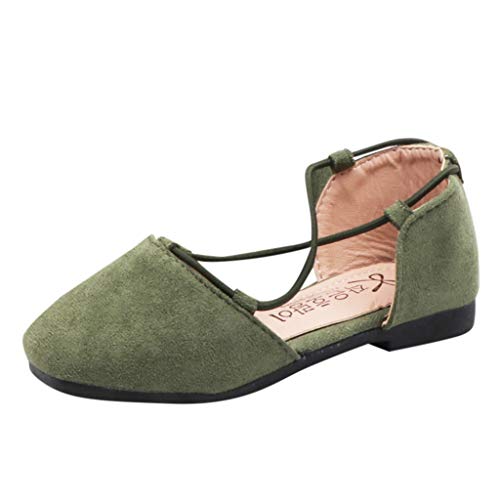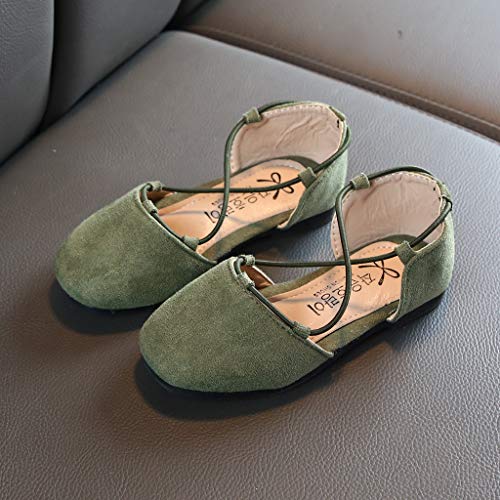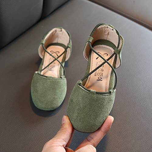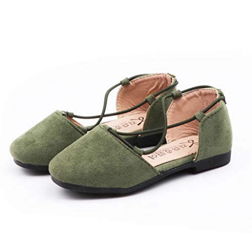 Zapatos De Princesa De Moda para NiñAs Correa Cruzada Zapatos para NiñOs PequeñOs Bebé Color SóLido Zapatos Transpirables Individuales Zapatos Romanos Flock Casual 3.5-12 AñOs Caqui Negro Rosa Verde