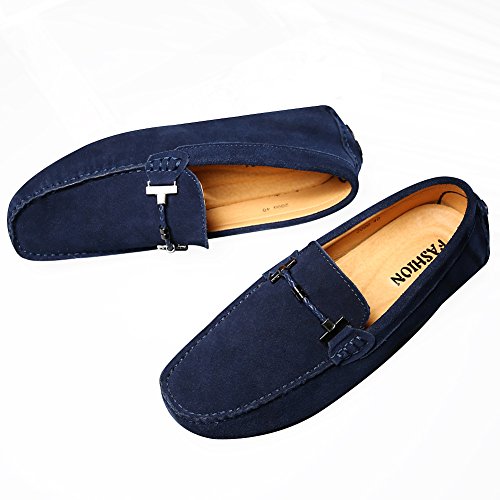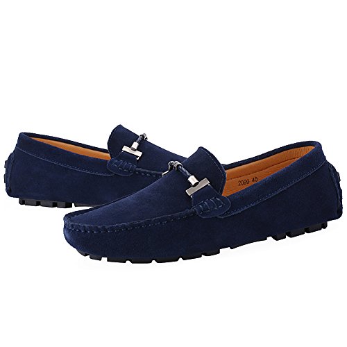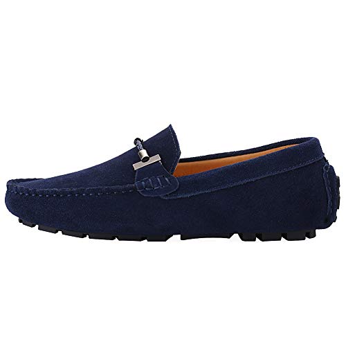 Jamron Hombres Elegante Hebilla Mocasines Comodidad Ante Zapatos de Conducir Estiloso Pantuflas Azul Marino SN19020 EU39.5
