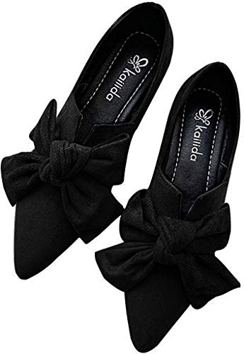 2019 Mujer Zapatillas del Barco, Bailarinas De Vestir con Lazo Zapatillas Planas Ante Punta Pointed Chic Bombas Zapatos De Vacasiones Mocasines Loafers(Negro, 40)