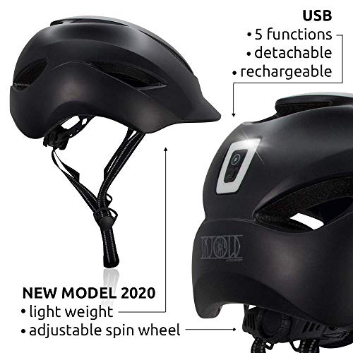 Crazy Safety Casco de Bici para Hombres, Mujeres, niños y niñas | Casco de Bicicleta con luz LED Recargable por USB integrada | Correas Reflectantes para Mayor Seguridad | Casco de Bici Urbana Ligero