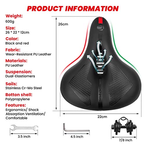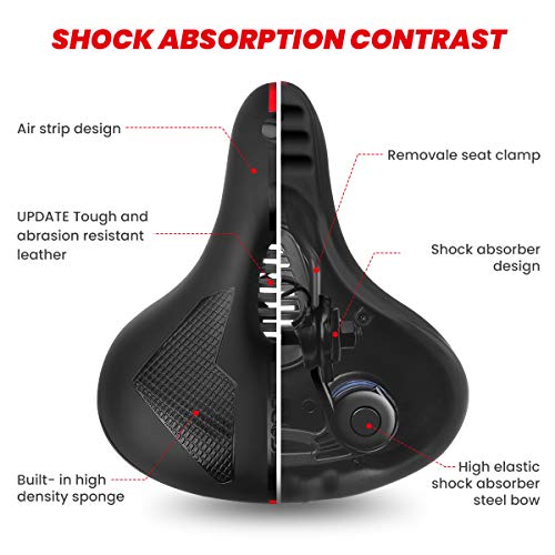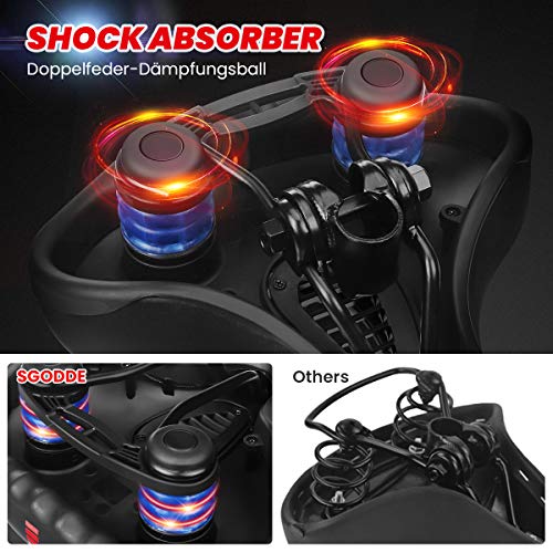 - 【Diseño Ergonómico】: El diseño aerodinámico del SGODDE sillín de bicicleta y el diseño frontal estrecho permiten que los muslos se muevan libremente mientras se conduce y evitan el roce de los muslos internos. También tiene excelente resistencia al impacto y máxima resistencia. La bola de goma de doble resorte que cuelga en la parte inferior del asiento de la bicicleta ofrece un fuerte efecto de absorción de impactos y una mejor protección.