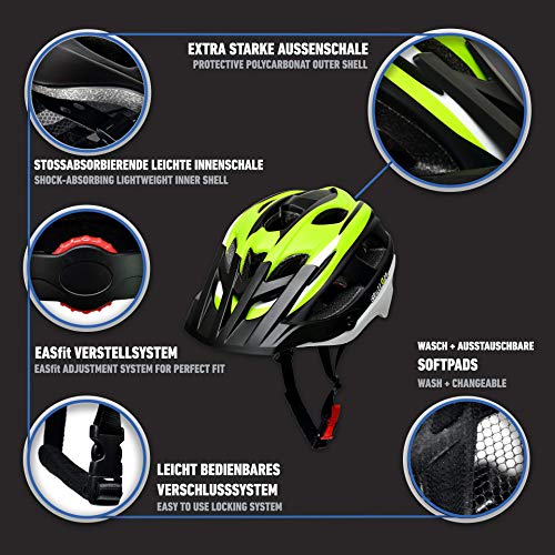 - SEGURO: El neón verde también es fácilmente reconocible sin iluminación ✔ La última tecnología en el molde ✔ carcasa rígida de policarbonato, embutido firmemente soldada EPS espuma rígida, actúa como una zona de deformación para un efecto de desaceleración óptima y estándar de referencia en el sector del ciclismo✔ colores fáciles de reconocer