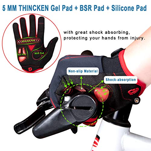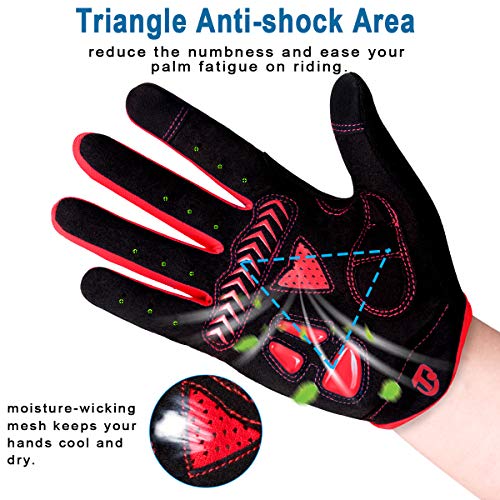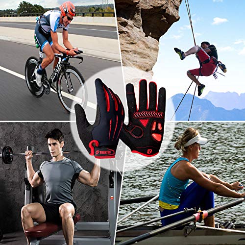WACCET Guantes MTB Dedos Largos Guantes Ciclismo con Pantalla Táctil, Antideslizante Guantes de Ciclismo Bicicleta Largos para Hombres y Mujeres (Rojo2, M)