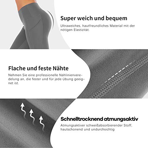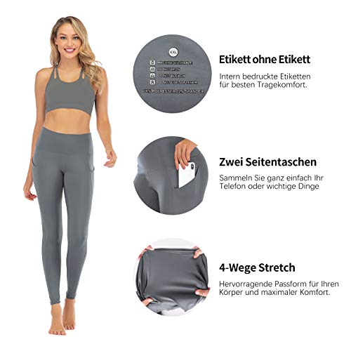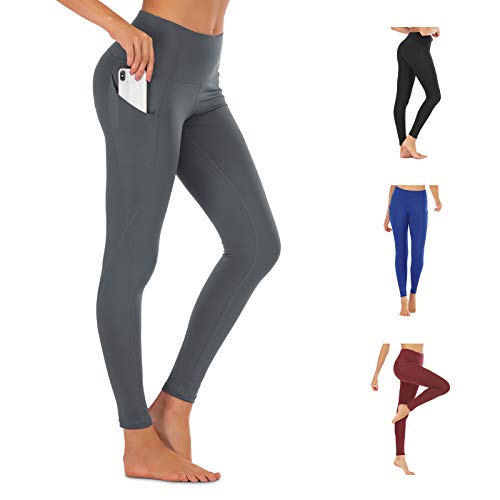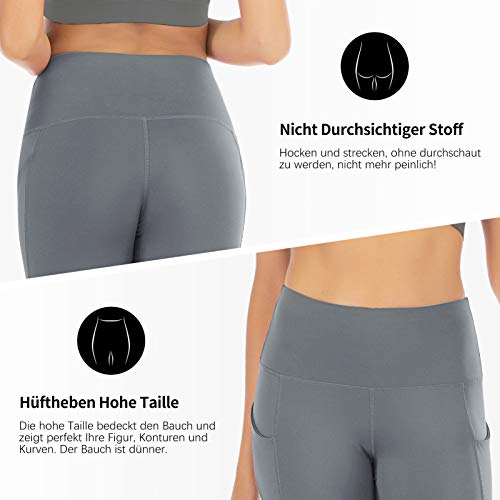 FREEZHOUSHANA Leggings Mujer Pantalones de yoga, Leggins deportivos opacos de cintura alta Medias elásticas con 2 bolsillos para fitness de ocio