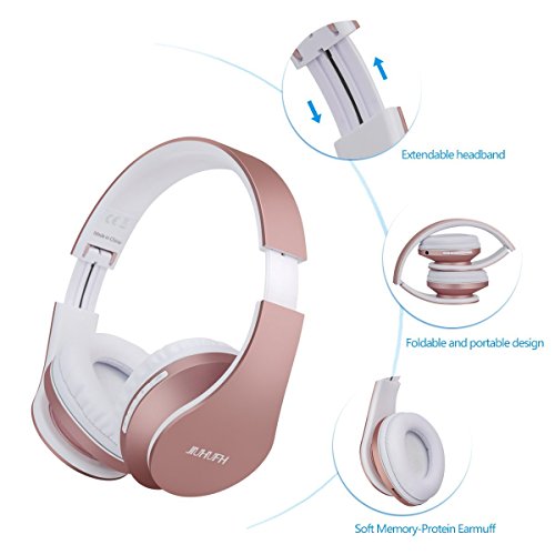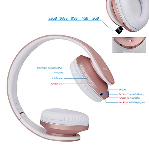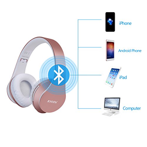 JIUHUFH Auriculares Bluetooth con Micrófono / MP3 / Radio FM/Manos Libres para Teléfonos Celulares - Rosados